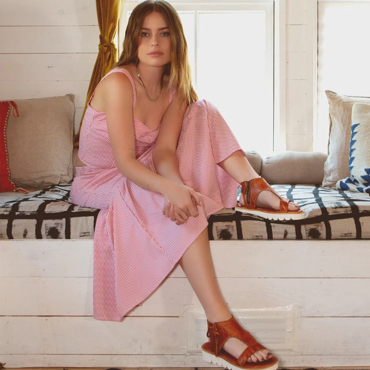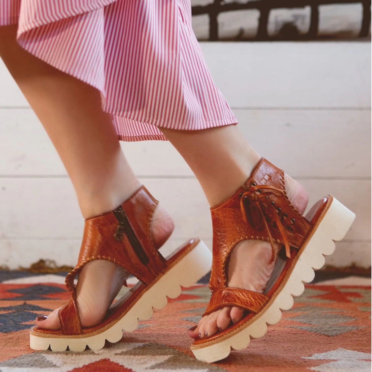 A feminine and refreshing take on a platform sandal. Zoe II is a beloved Nina sandal, elevated. Lightweight scalloped white outsole gives this sandal a youthful and playful vibe.