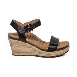 Aetrex Women’s Sydney Quarter Strap Espadrille Wedge – Black Leather